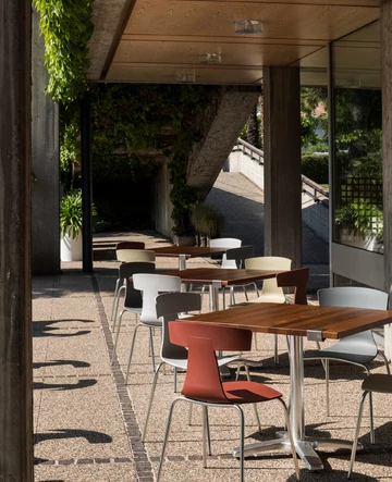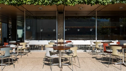 Restaurant Gretl am See at Lake Caldaro offers a lakeside dining experience that celebrates the interplay of materials and light. The terrace combines stone, wood, metal, fabric and glass in a harmonious tension, where sunlight dances across surfaces to evoke contrast, continuity and a feeling of permanence. The design is a dialogue between past and future, integrating tradition and modernity in every detail.