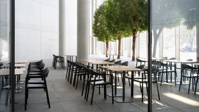 The Design Museum Munich café, located within the Pinakothek der Moderne, offers a sleek and functional gathering space designed for both casual interaction and event support. This setting reflects a commitment to clarity of form and rhythm within a cultural environment.