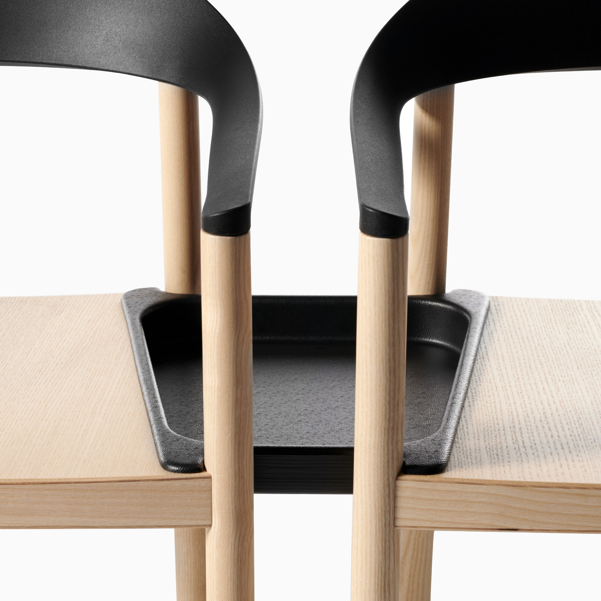 The surface between the chairs also serves as a book or bag rest. Made of thermoformed recycled plastic.