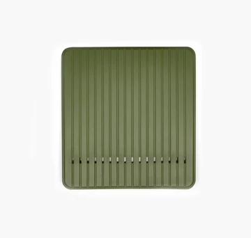 Removable, self-skinning, integral polyurethane cushion available in Black, Light Grey, Oxide Red, Ocean Blue, Moss Green, Concrete Grey, and Olive Green."