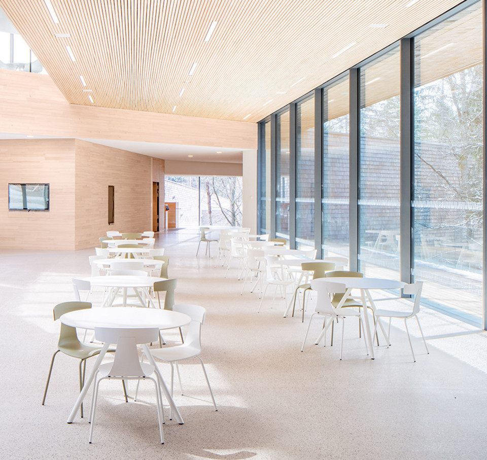 REMO chair, design Konstantin Grcic and MART table, design P.lab, Besucher- und Informationszentrum auf dem Ruhestein im Schwarzwald, Deutschland. Architektur: Sturm und Wartzeck. Projektpartner: UnternehmenForm. Fotografie: Markus Guhl.